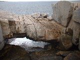| Natural Bridge - formed by erosion underneath. Sooner or later this rock will collapse into the ocean.